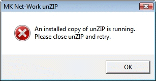 Under Windows Vista and Windows 7, depending on the UAC (User Account Control) settings, you may encounter this error when installing unZIP on your computer: